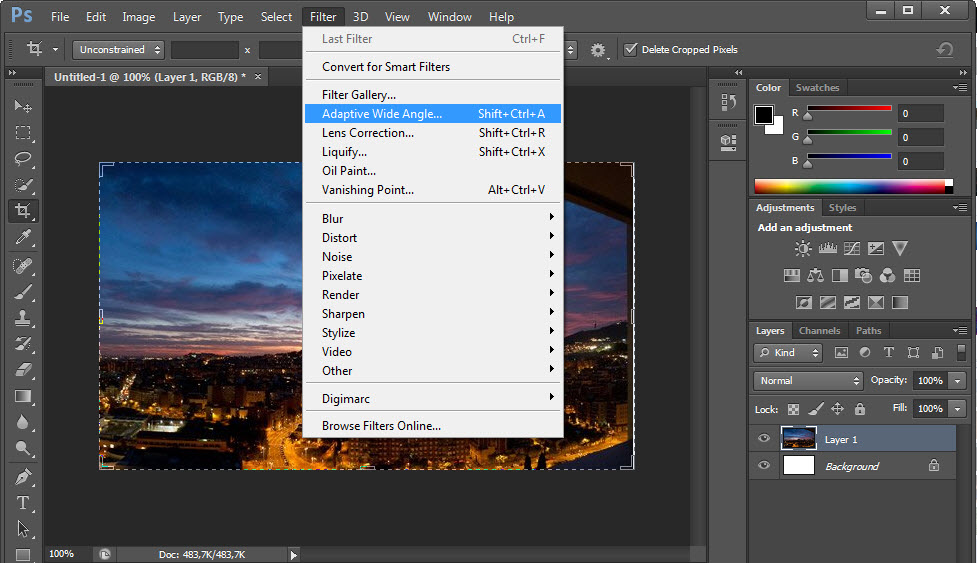 Ook voor wat betreft het importeren van foto’s is de eerdergenoemde ‘Adaptive Wide Angle’ filter een geschenk uit de hemel. Deze bewerkt kiekjes die met een groothoeklens zijn genomen en corrigeert zelfs perspectief in je compositie.