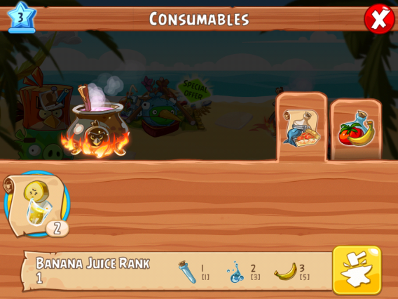 Heb je specifiek materiaal nodig om in de toverketel te gooien? Houd dan je vinger langer op het object dat je wilt brouwen en Angry Birds Epic geeft je een indicatie waar je de ingrediënten ervoor vindt.