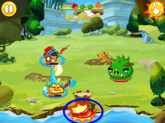 Probeer daarom eens deze strategie: is er een vijand met een bijna leeg balkje, focus dan je groepsaanval op hem. Vervolgens houd je de krachtige rode vogel over, die snel doorschakelt naar een sterkere vijand. Zo haal je het uiterste uit de krachten van je verschillende vogels.