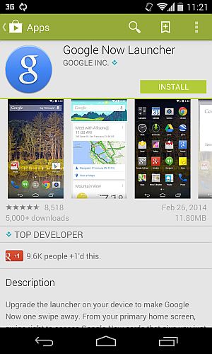 Heeft je telefoonmodel ‘Nexus’ in de naam of is het een Google Play Edition-apparaat, zoals de HTC-GPE-One, dan is het mogelijk om de launcher direct uit Google Play te downloaden en installeren. Om dit te doen open je deze link en tik je op Install.