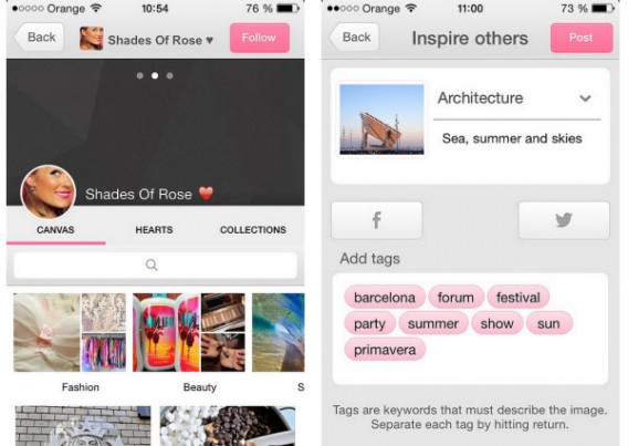Met We Heart It deel je openbaar allerlei foto’s; die van anderen en die van jezelf. De pastelroze tinten zetten de meisjesachtige toon voor de app en met een beetje geluk slaat We Heart It aan bij precies die jonge,vrouwelijke doelgroep.