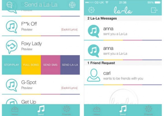 La-la is alleen beschikbaar voor iPhone en draait volledig om muziek. Eén probleem: de app is nog niet functioneel. Theoretisch moet je met La-la geluidsfragmenten uitwisselen met vrienden om bijvoorbeeld je stemming te beschrijven of een romantische boodschap over te brengen.