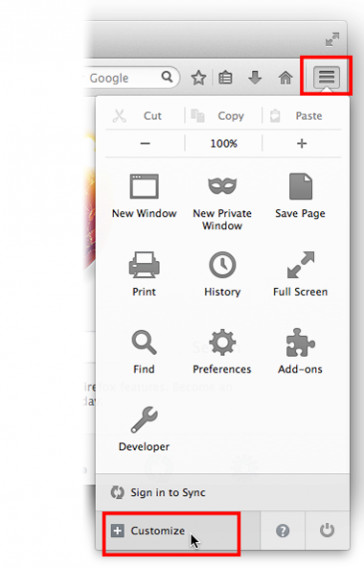 Firefox Hello is op dit moment in bèta, en nog niet voor iedereen beschikbaar. Om te checken of jij Hello kunt gebruiken klik je op de Menu-knop, en vervolgens op Customize. Als jij Hello hebt, is het chat-icoon in de linkerlijst te zien. Als je daar nog geen bubbelicoon ziet, moet je nog even wachten tot Mozilla klaar is voor een volledige launch van Hello.