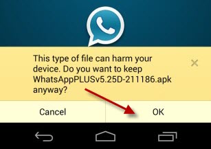 De officiële naam van het bestand is WhatsAppPLUSv5.25D-211186.apk
