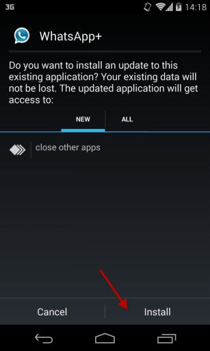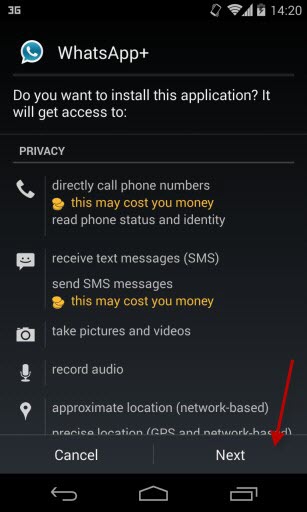 …en bevestig dat je WhatsApp Plus toegang geeft tot de volgende onderdelen: