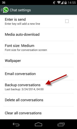 WhatsApp maakt automatisch back-up van je lopende chat-conversaties, al is het slimmer is om een handmatige back-up te maken. Ga hiervoor naar de chatopties en maak een backup van je gesprekken.