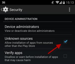Voordat je WhatsApp Plus installeert, moet je instellen dat Android installaties vanuit onbekende bronnen toestaat. Om dit te doen ga je naar Instellingen > Beveiliging > Onbekende bronnen en zet je een vinkje bij Toestaan dat apps uit onbekende bronnen worden geïnstalleerd.